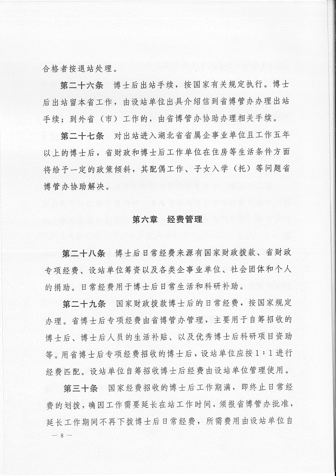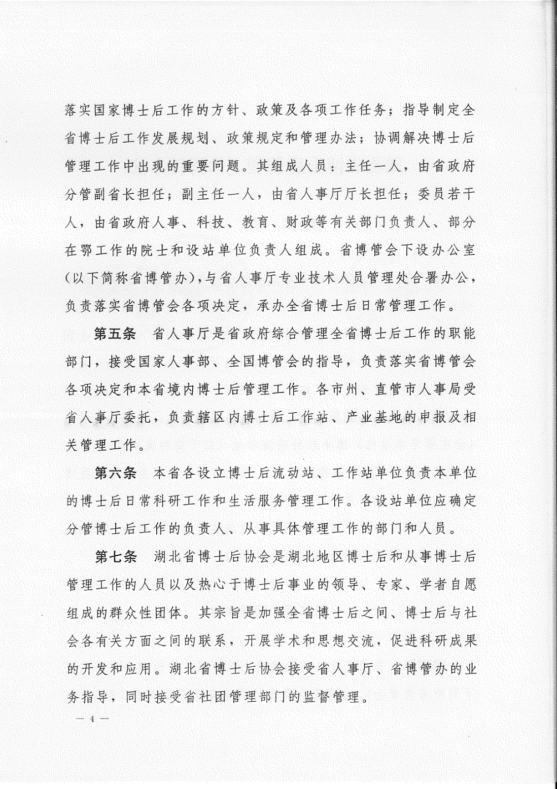 湖北省博士后管理事情协调委员会人事厅关于印发《湖北省...